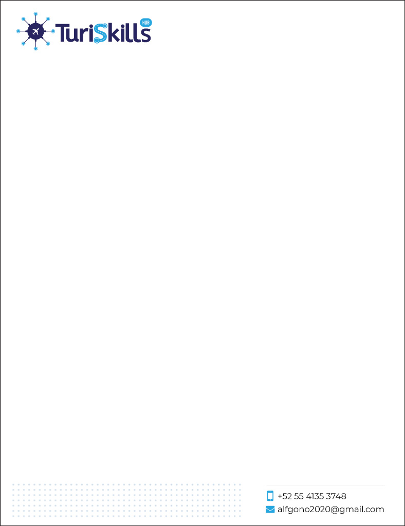 La idea de crear un logotipo para la empresa Turiskills que se dedica a vender cursos relacionados a los viajes corporativos, el diseño incluye el logotipo, portada para facebook, firma electrónica y hoja membretada.